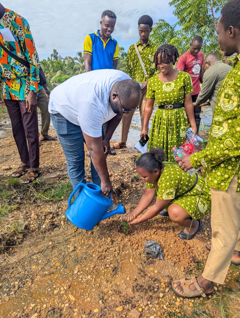 The commemoration event began with an opening prayer by the Presiding Member of South Tongu District Assembly, Hon. Mensah Kwaku Kudze, followed by an opening remark by the District Chief Executive (DCE), Hon. Victoria Dzeklo. Hon. Dzeklo emphasized the importance of trees in our ecosystem, urging everyone to desist from cutting down trees and instead nurture them. “Trees protect our buildings, and we should strive to use alternative energy sources instead of firewood for charcoal,” she said. She also announced that the Assembly would be visiting communities to continue the Tree for Life project, ensuring that the initiative’s impact is felt across the district.